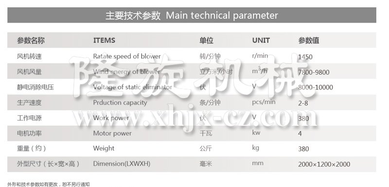 XH型集裝袋內部清理機主要用于高質(zhì)量集裝袋(食品、化工袋等)內部清理,使達到清潔要求。工作原理通過(guò)風(fēng)機把集裝袋吹漲,在風(fēng)吹氣流的震動(dòng)下,將袋內部的雜質(zhì)吹除,同時(shí)靜電消除裝置使雜物不再吸附袋內,雜質(zhì)由氣流收集到儲存箱中。本機操作簡(jiǎn)便,能耗低,效率高,省用工。