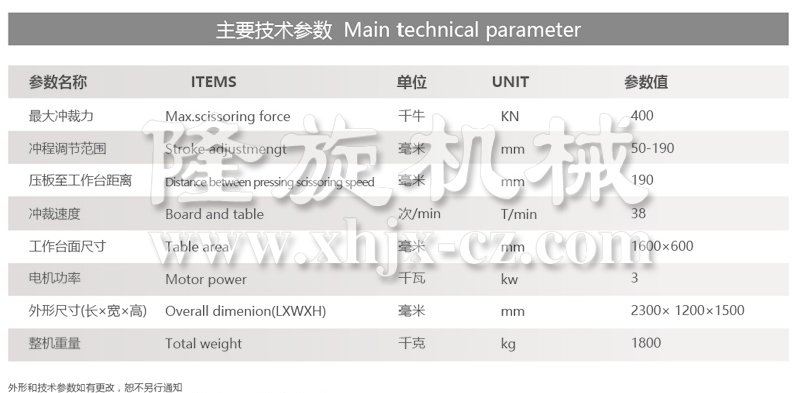 產(chǎn)品概述:XH-XLJ400型液壓平面下料機主要適用于輕工系統的皮革,塑料橡膠、制鞋、服裝、制盒等行業(yè)的不同寬度及形狀的原材料裁切成型。同時(shí)主要用于切割集裝袋上所需要的相關(guān)部件,如涂完膜之后的底,蓋布上的進(jìn)、出料口,拉筋袋拉筋部件的橢圓形進(jìn)料口。并可將裁剪后剩下的涂膜布…